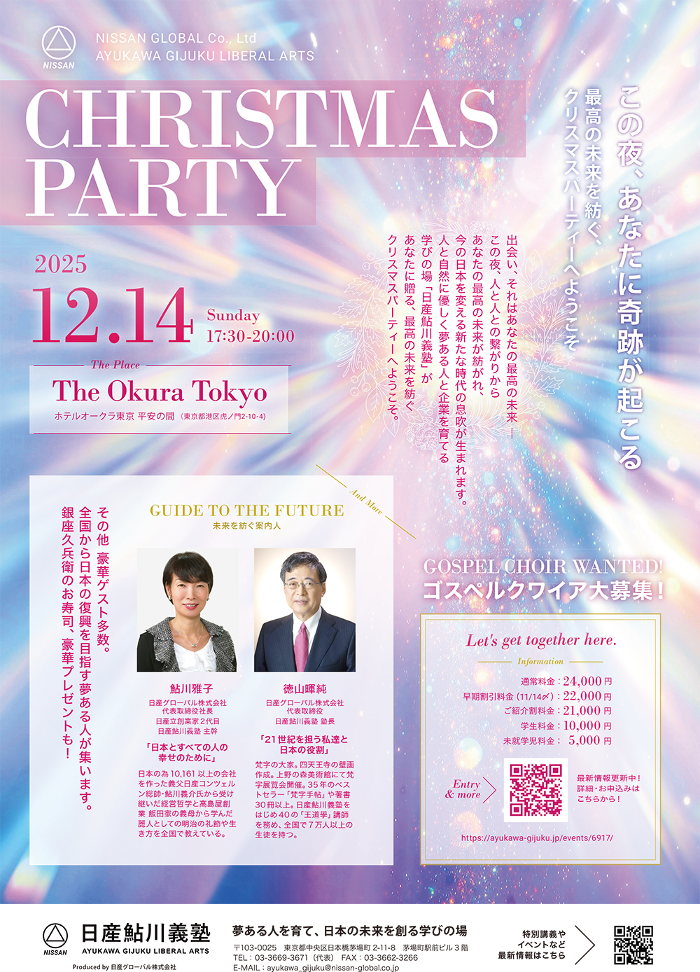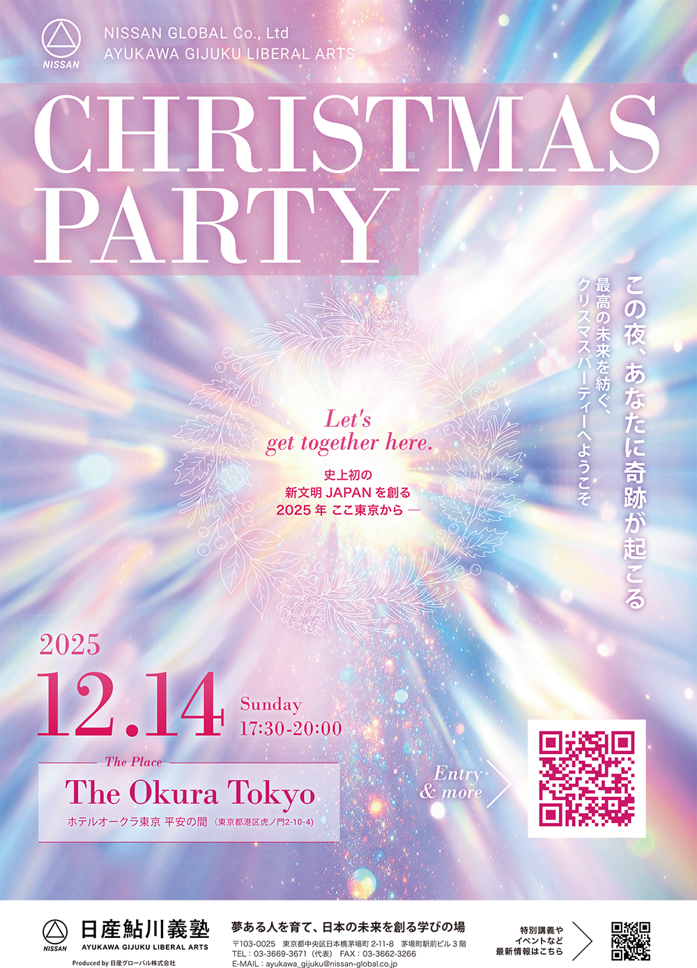 最高の未来を紡ぐ、日産鮎川義塾クリスマスパーティーへの特別ご案内状を